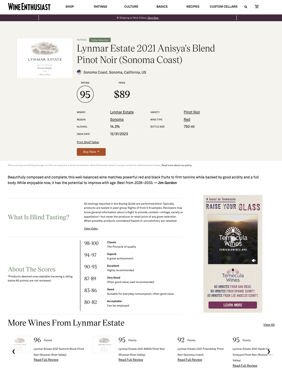 - Online Review Page – Your rating and review showcased on WineEnthusiast.com/ratings, plus a ‘Buy Now’ button linking to your preferred destination.